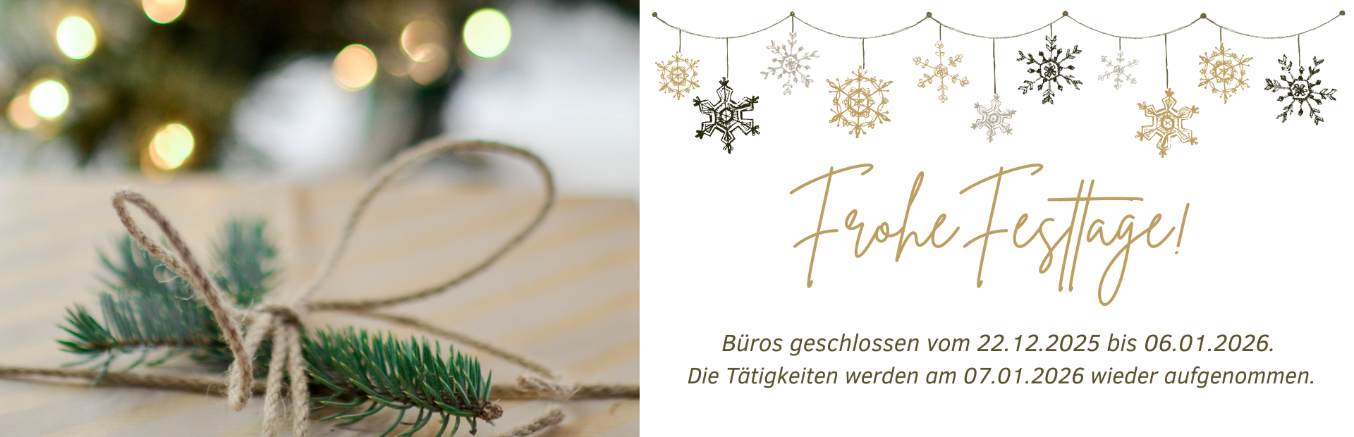 Anlässlich der Feiertage bleiben unsere Büros von Montag, 22. Dezember 2025 bis einschließlich Dienstag, 6. Januar 2026 geschlossen.